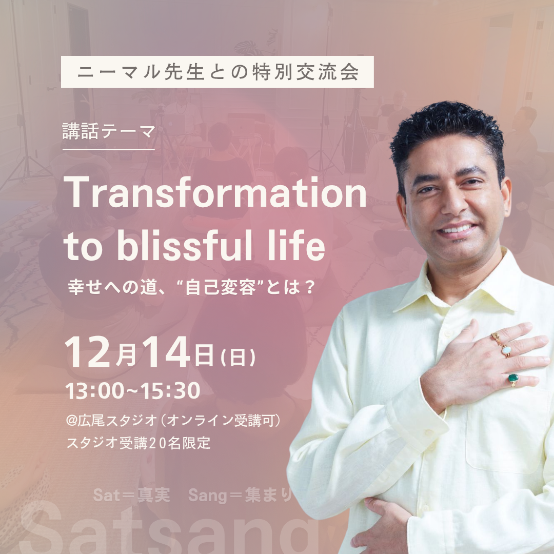 今回ニーマル先生から学ぶテーマは『Transformation to blissful life 幸せへの道、"自己変容”とは?』